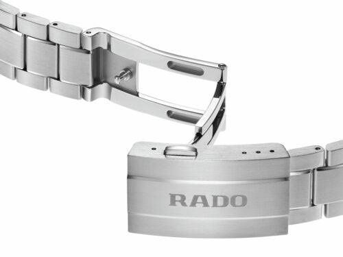 At the heart of the watch, the Rado calibre R292 ensures exceptional accuracy and reliability. This 3-jewel quartz movement combines PreciDrive and HeavyDrive technologies, enabling precise regulation of each impulse and maintaining a deviation of no more than ±10 seconds per year. A discreet date window at 3 o’clock integrates seamlessly into the dial’s balanced design.