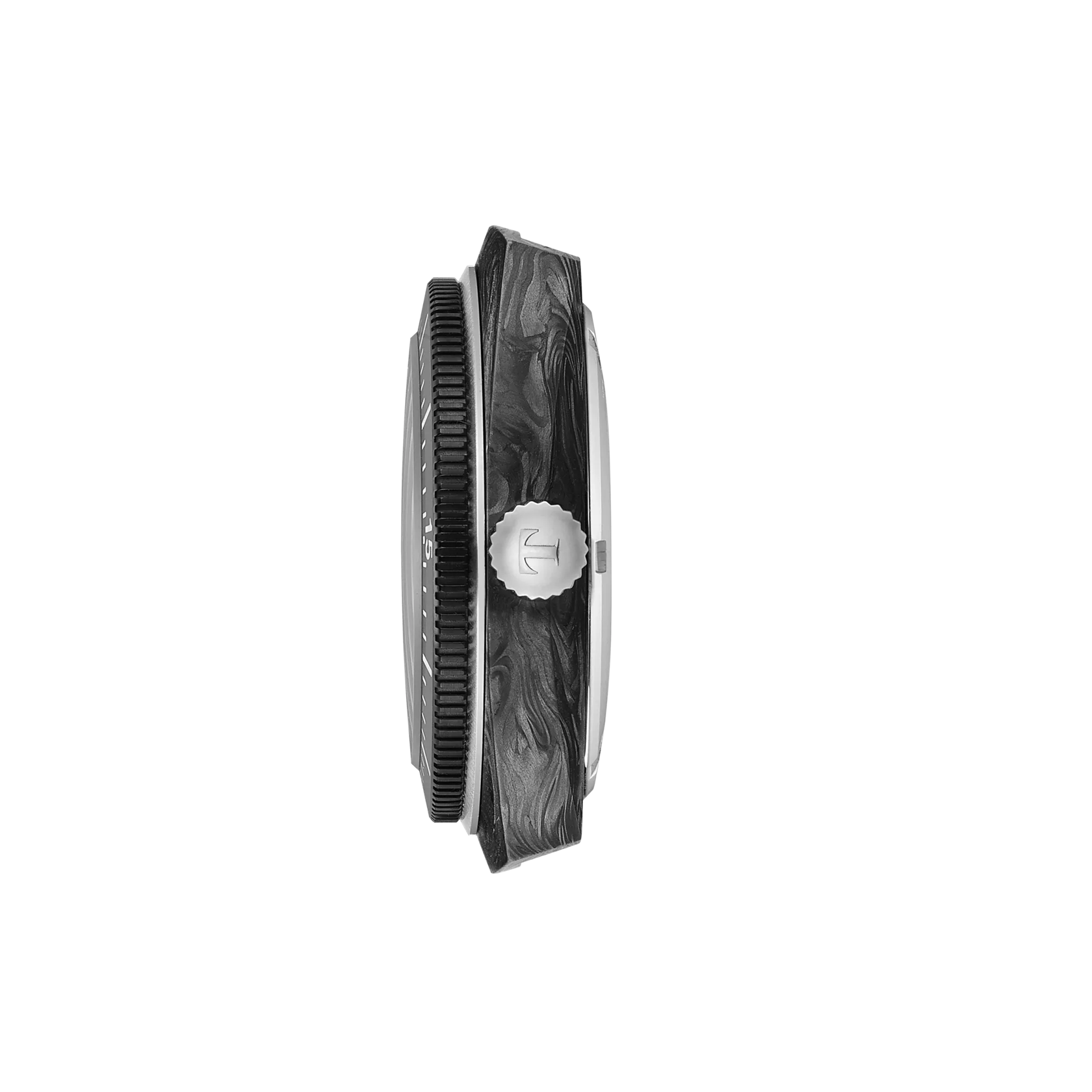 316L stainless steel case with black and grey marbled forged carbon